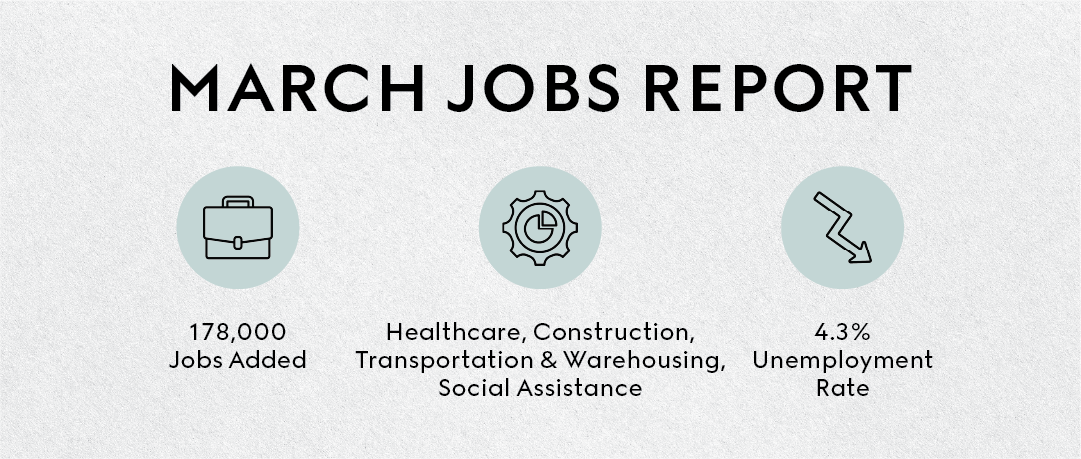 The U.S. economy added 178,000 jobs in March, reversing February’s decline. At the same time, the unemployment rate held steady at 4.3%, reinforcing a pattern we’ve seen for months: the labor market is stable, but not accelerating.